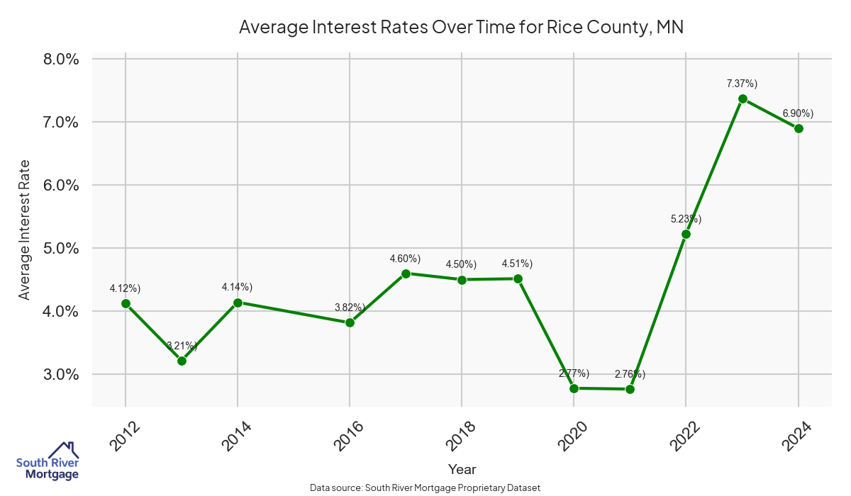 There are approximately 37 active reverse mortgage loans in Rice County. The average interest rate in Rice County is 7.37% for reverse mortgages. The average maximum claim amount (the lesser of the appraisal or lending limit), among reverse mortgage borrowers, in Rice County was $429,000.00 in 2024.