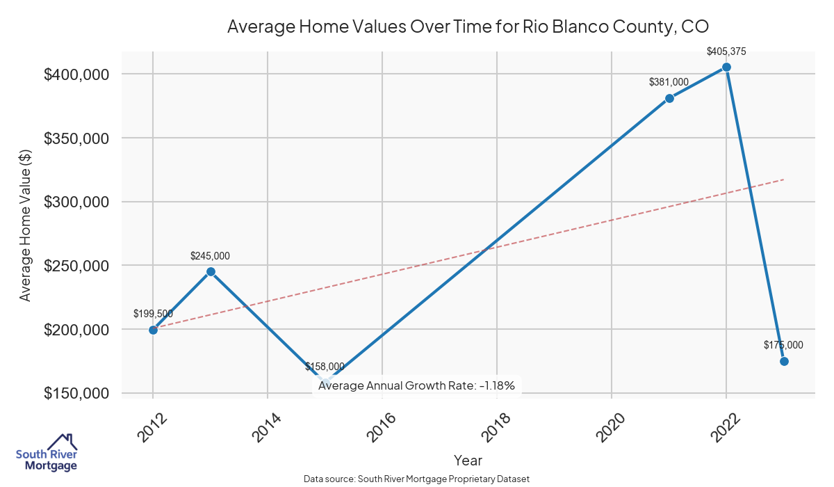 In 2024, there were 10 active reverse mortgage loans in Rio Blanco County, Colorado. The average home value in Rio Blanco County is $398,566.30.