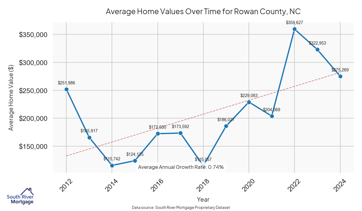 In 2024, there were 172 active reverse mortgage loans in Rowan County, North Carolina. The average home value in Rowan County is $333,472.66.