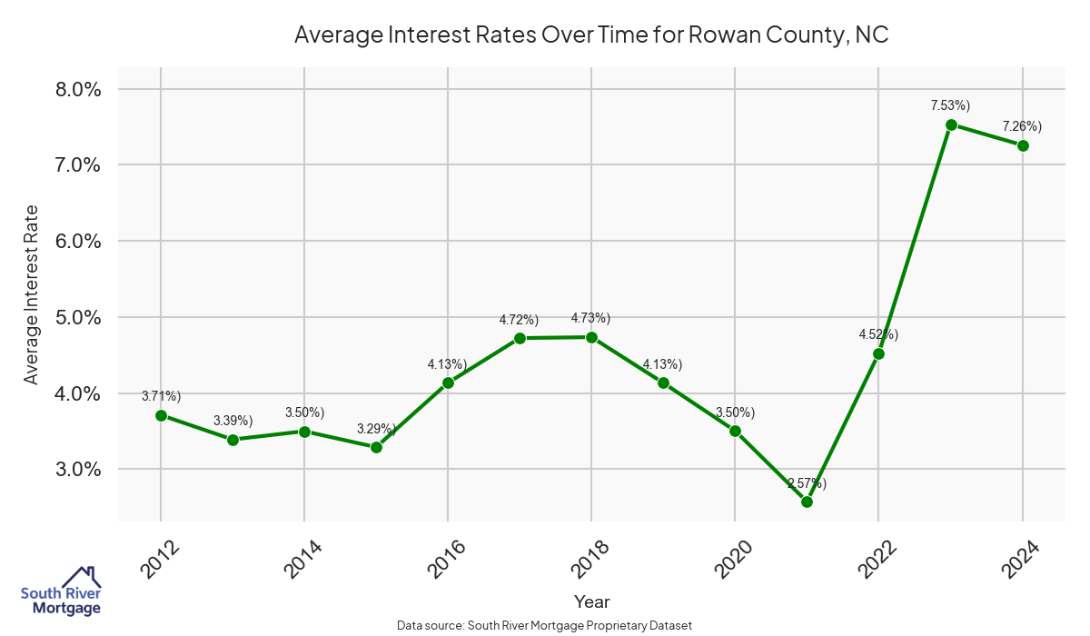 There are approximately 172 active reverse mortgage loans in Rowan County. The average interest rate in Rowan County is 7.65% for reverse mortgages. The average maximum claim amount (the lesser of the appraisal or lending limit), among reverse mortgage borrowers, in Rowan County was $327,592.59 in 2024.