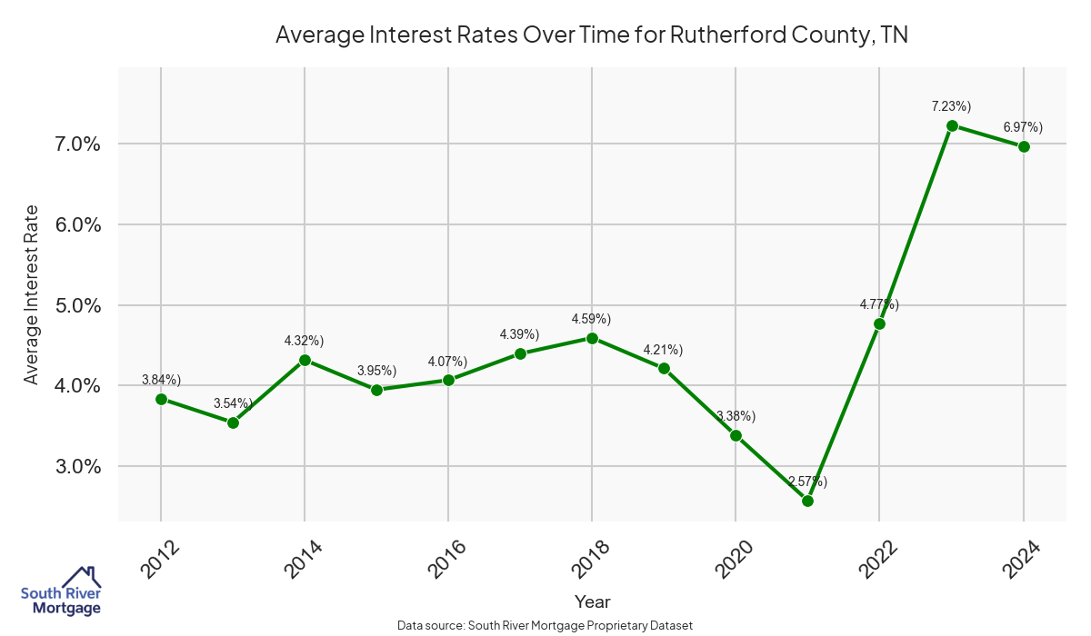 There are approximately 257 active reverse mortgage loans in Rutherford County. The average interest rate in Rutherford County is 7.44% for reverse mortgages. The average maximum claim amount (the lesser of the appraisal or lending limit), among reverse mortgage borrowers, in Rutherford County was $370,681.82 in 2024.
