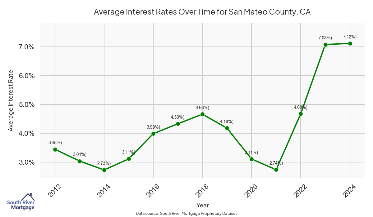 There are approximately 1160 active reverse mortgage loans in San Mateo County. The average interest rate in San Mateo County is 8.77% for reverse mortgages. The average maximum claim amount (the lesser of the appraisal or lending limit), among reverse mortgage borrowers, in San Mateo County was $1,730,571.43 in 2024.