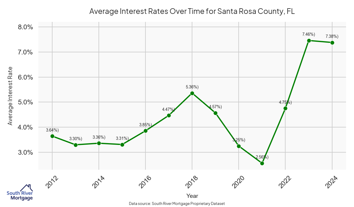 There are approximately 199 active reverse mortgage loans in Santa Rosa County. The average interest rate in Santa Rosa County is 7.81% for reverse mortgages. The average maximum claim amount (the lesser of the appraisal or lending limit), among reverse mortgage borrowers, in Santa Rosa County was $373,076.92 in 2024.