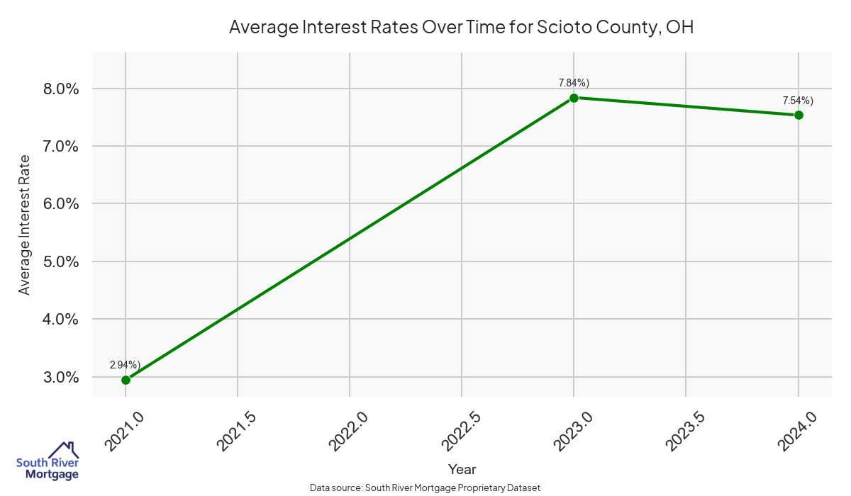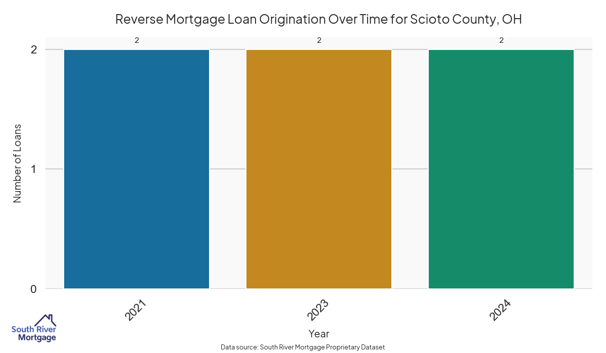 There are approximately 6 active reverse mortgage loans in Scioto County. The average interest rate in Scioto County is 7.98% for reverse mortgages. The average maximum claim amount (the lesser of the appraisal or lending limit), among reverse mortgage borrowers, in Scioto County was $141,666.67 in 2024.