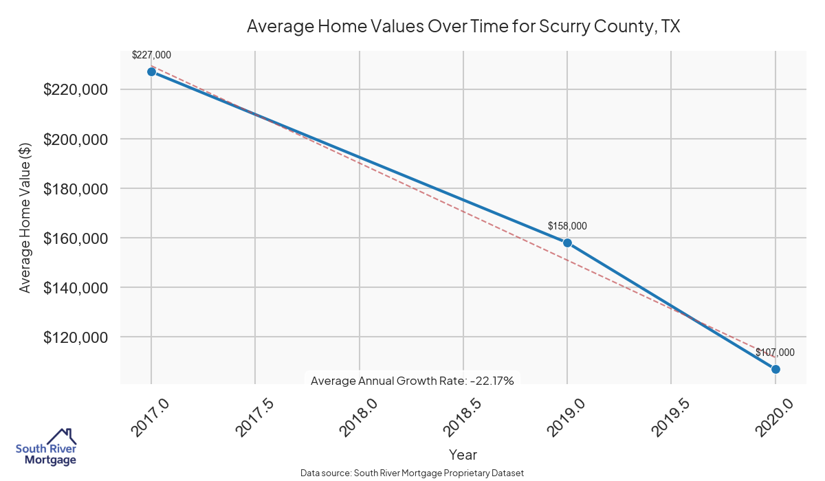 In 2024, there were 3 active reverse mortgage loans in Scurry County, Texas. The average home value in Scurry County is $216,271.67.
