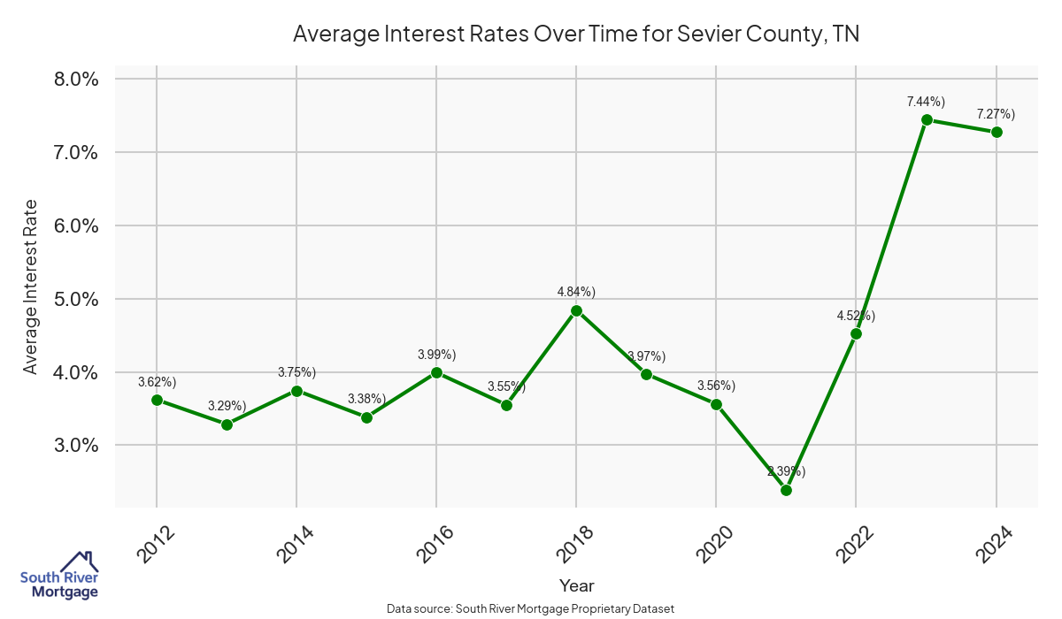 There are approximately 125 active reverse mortgage loans in Sevier County. The average interest rate in Sevier County is 7.57% for reverse mortgages. The average maximum claim amount (the lesser of the appraisal or lending limit), among reverse mortgage borrowers, in Sevier County was $357,272.73 in 2024.