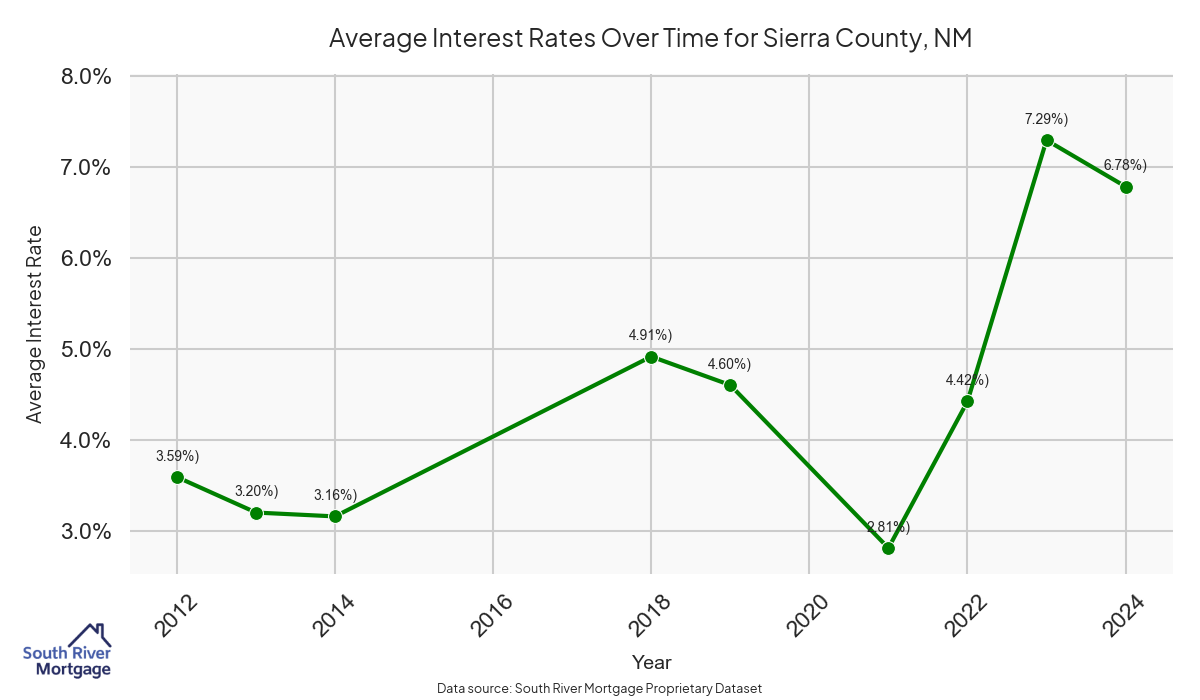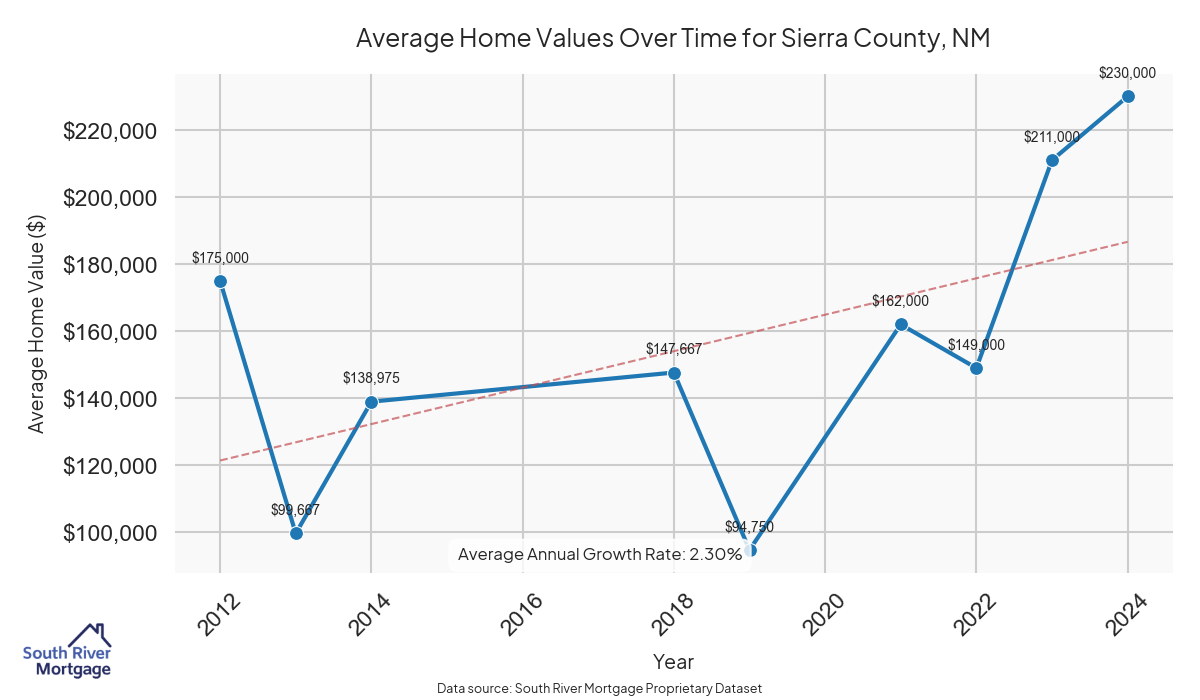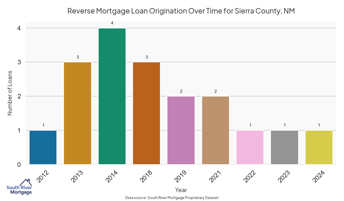 In 2024, there were 18 active reverse mortgage loans in Sierra County, New Mexico. The average home value in Sierra County is $158,954.39.
