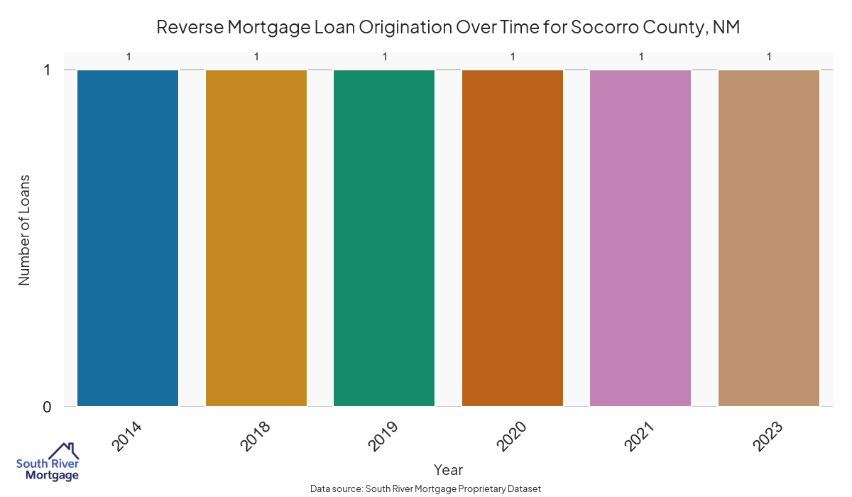 In 2024, there were 6 active reverse mortgage loans in Socorro County, New Mexico. The average home value in Socorro County is $190,547.67.