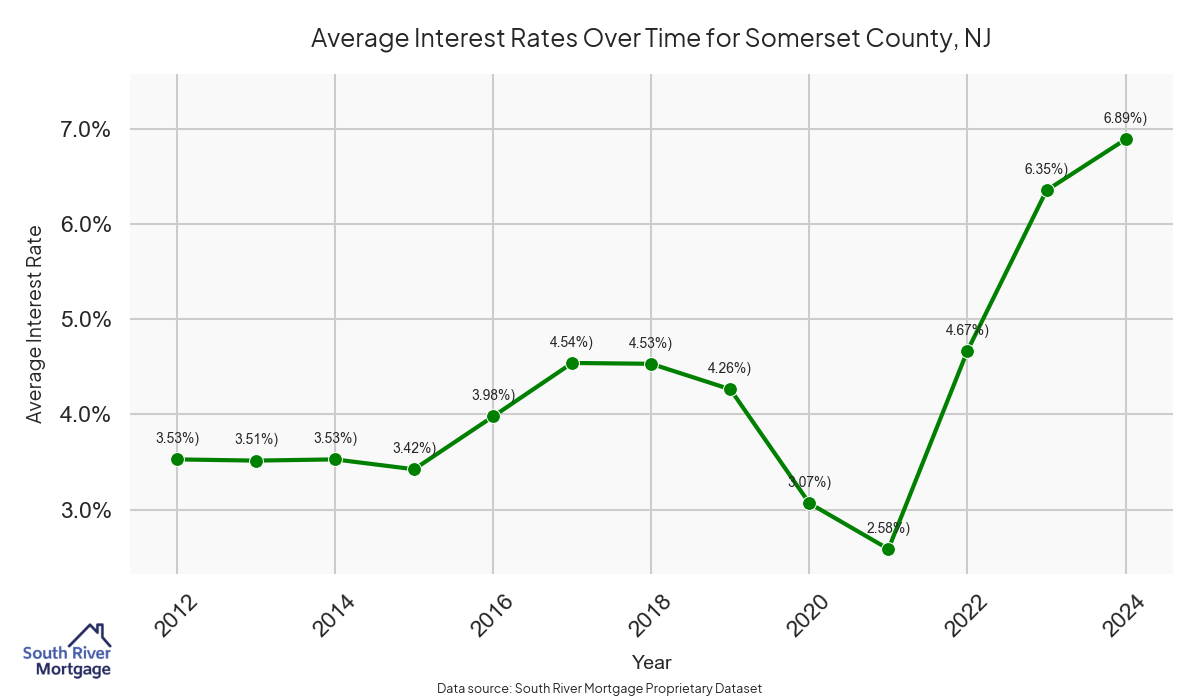 There are approximately 221 active reverse mortgage loans in Somerset County. The average interest rate in Somerset County is 7.99% for reverse mortgages. The average maximum claim amount (the lesser of the appraisal or lending limit), among reverse mortgage borrowers, in Somerset County was $508,181.82 in 2024.