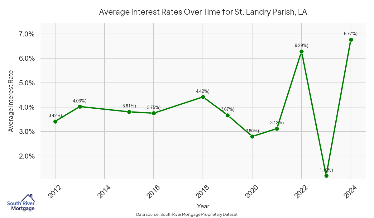 There are approximately 28 active reverse mortgage loans in St. Landry Parish. The average interest rate in St. Landry Parish is 6.95% for reverse mortgages. The average maximum claim amount (the lesser of the appraisal or lending limit), among reverse mortgage borrowers, in St. Landry Parish was $265,000.00 in 2024.
