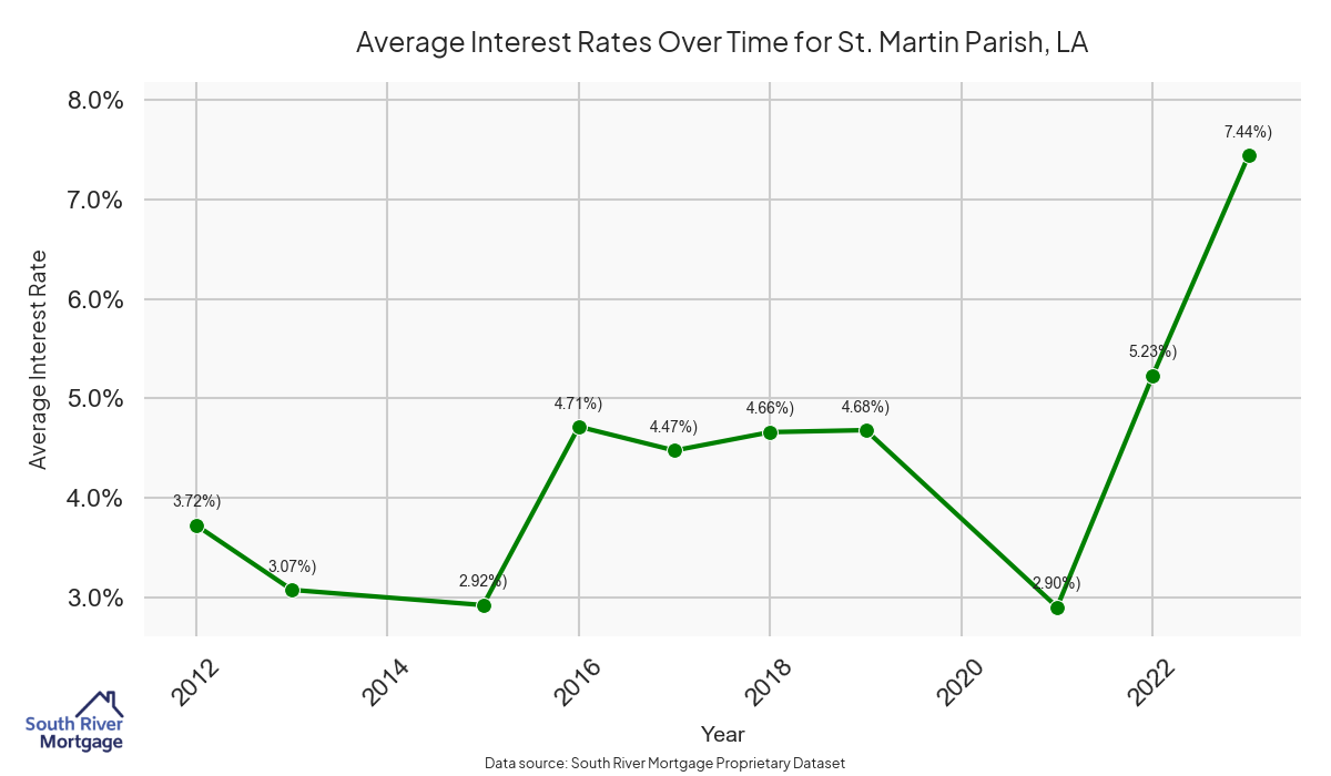 There are approximately 17 active reverse mortgage loans in St. Martin Parish. The average interest rate in St. Martin Parish is 8.07% for reverse mortgages. The average maximum claim amount (the lesser of the appraisal or lending limit), among reverse mortgage borrowers, in St. Martin Parish was $160,000.00 in 2024.