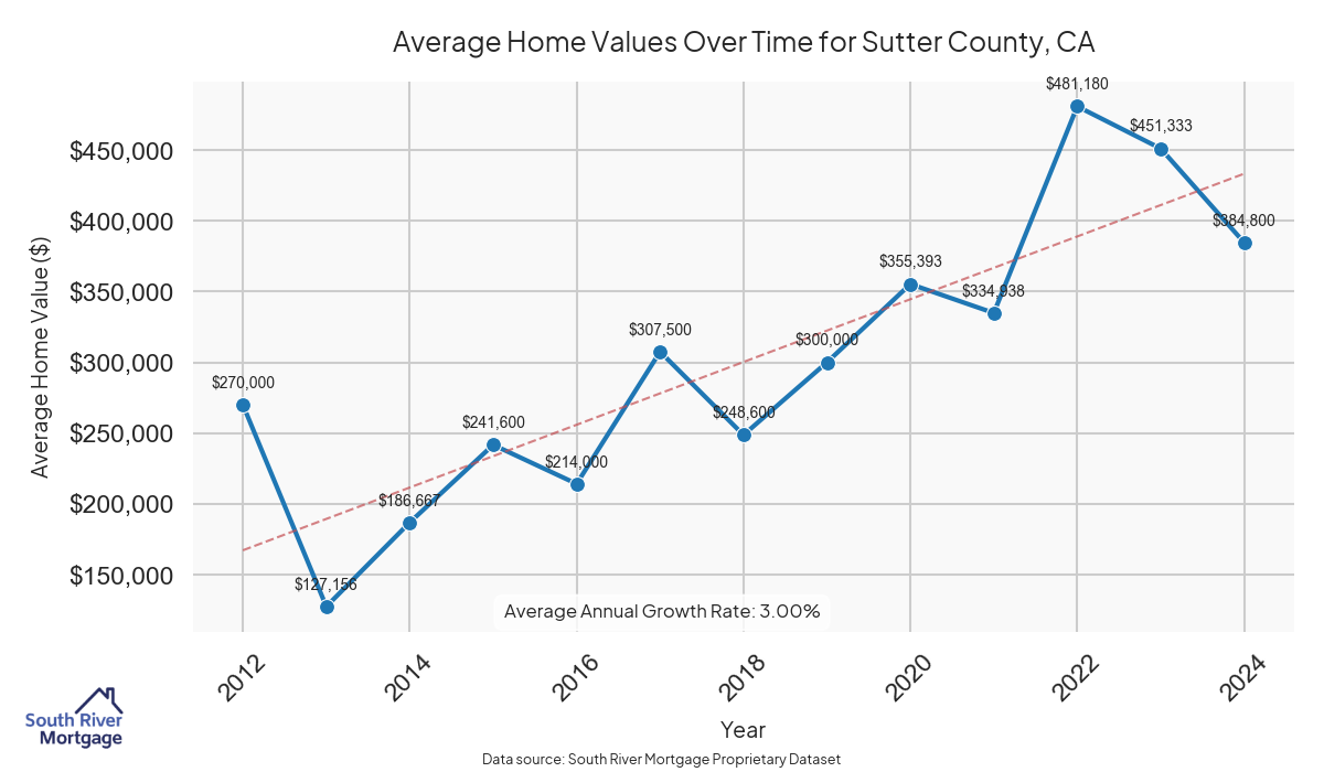 Sutter County, located in California, is home to a diverse population and enjoys a Mediterranean climate with hot, dry summers and mild, wet winters. The county is known for its rich agricultural heritage, particularly its production of peaches, almonds, and walnuts. Sutter County also boasts a number of recreational opportunities, including parks, rivers, and historical sites. With an average home value of $421,802.99 and an average property tax of $2,653.41, Sutter County offers residents a relatively affordable housing market. Seniors in the area may find reverse mortgages to be a viable financial option, allowing them to access the equity in their homes while still maintaining ownership. As interest rates in the county average at 0.0388, seniors may benefit from leveraging their property value through a reverse mortgage to supplement their retirement income.