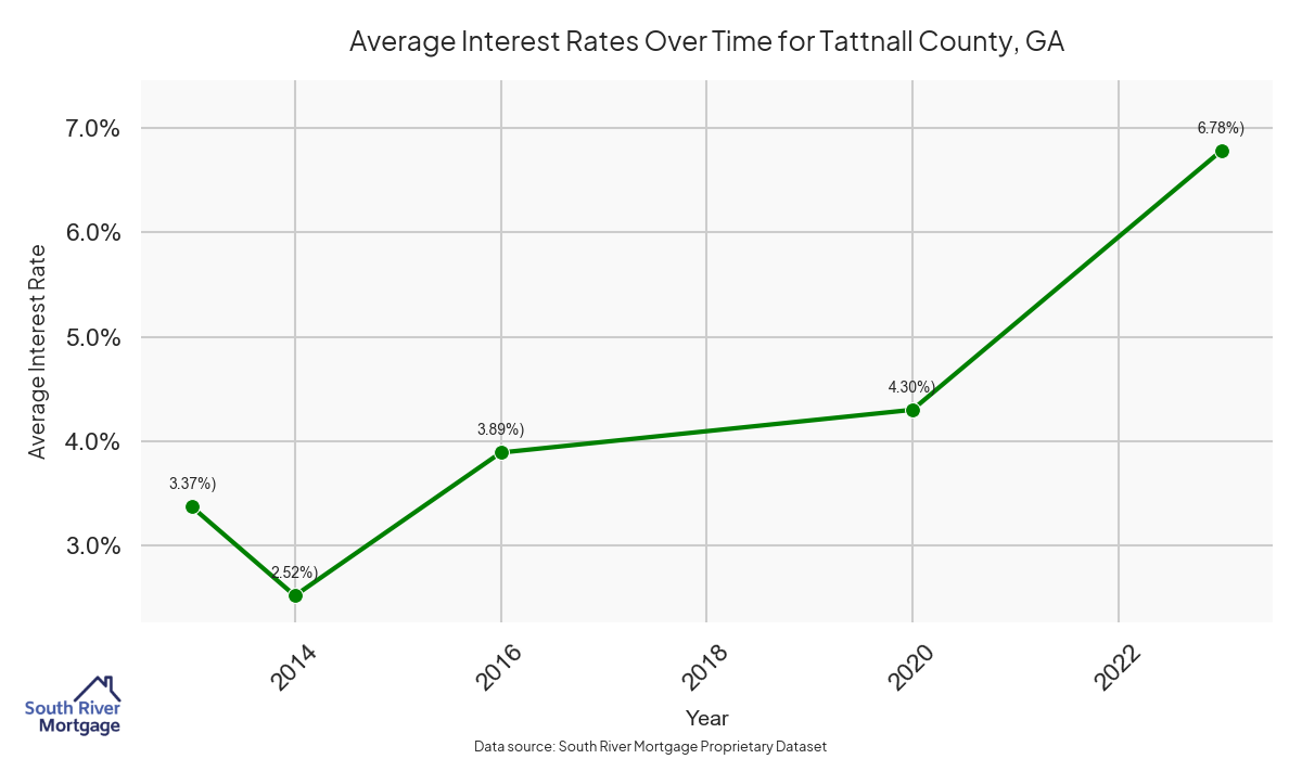 There are approximately 6 active reverse mortgage loans in Tattnall County. The average interest rate in Tattnall County is 8.21% for reverse mortgages. The average maximum claim amount (the lesser of the appraisal or lending limit), among reverse mortgage borrowers, in Tattnall County was $155,000.00 in 2024.