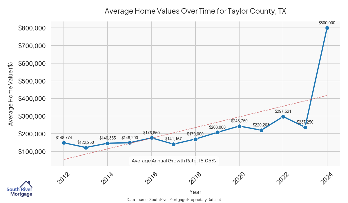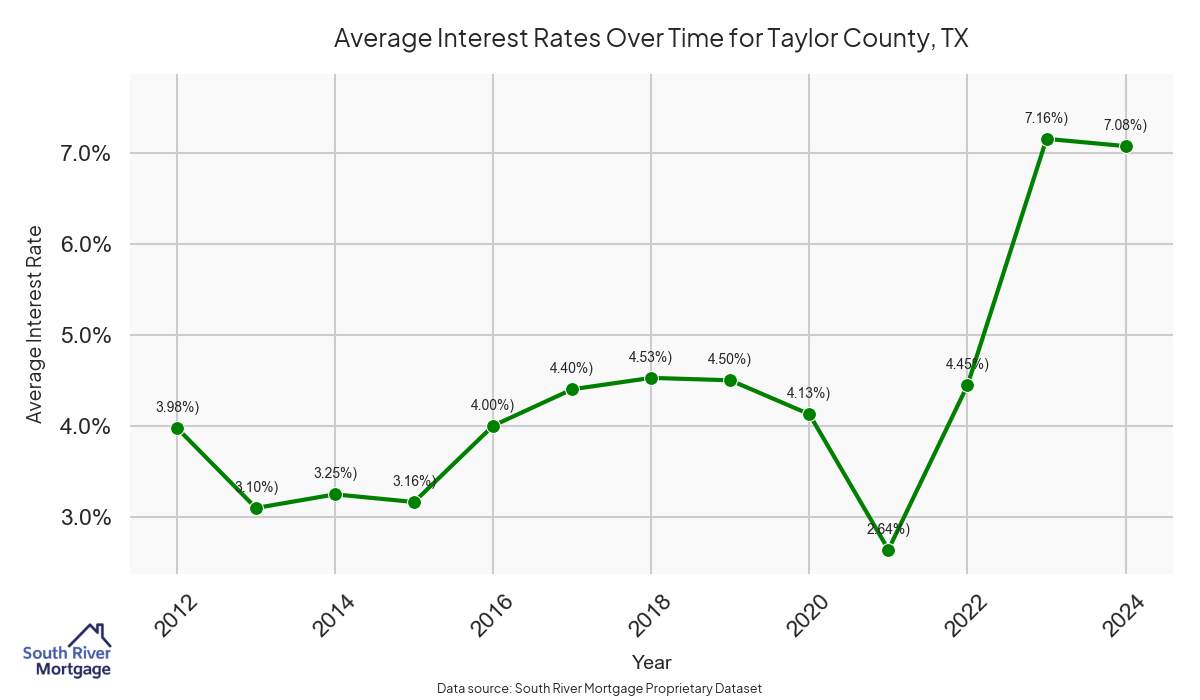 There are approximately 86 active reverse mortgage loans in Taylor County. The average interest rate in Taylor County is 7.38% for reverse mortgages. The average maximum claim amount (the lesser of the appraisal or lending limit), among reverse mortgage borrowers, in Taylor County was $261,000.00 in 2024.