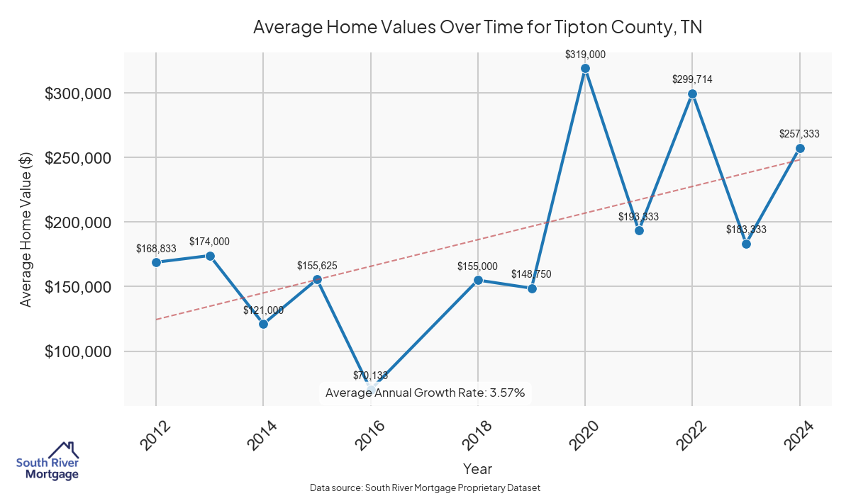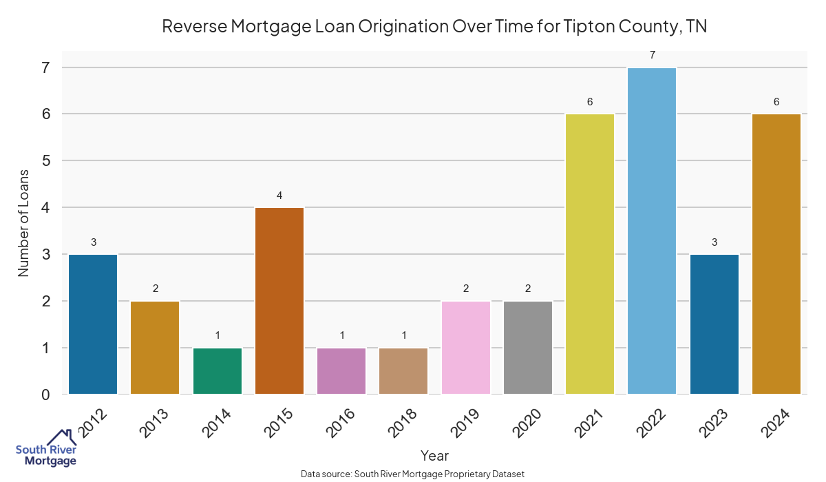 In 2024, there were 38 active reverse mortgage loans in Tipton County, Tennessee. The average home value in Tipton County is $308,782.58.