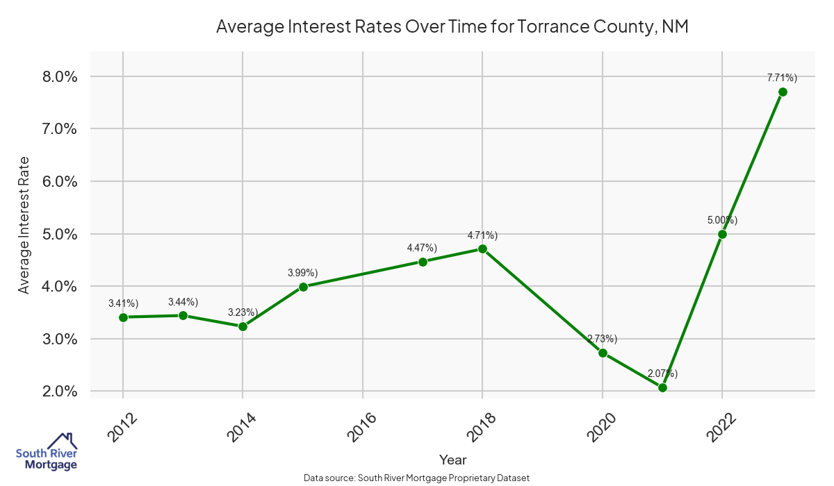 There are approximately 14 active reverse mortgage loans in Torrance County. The average interest rate in Torrance County is 7.91% for reverse mortgages. The average maximum claim amount (the lesser of the appraisal or lending limit), among reverse mortgage borrowers, in Torrance County was $210,000.00 in 2024.