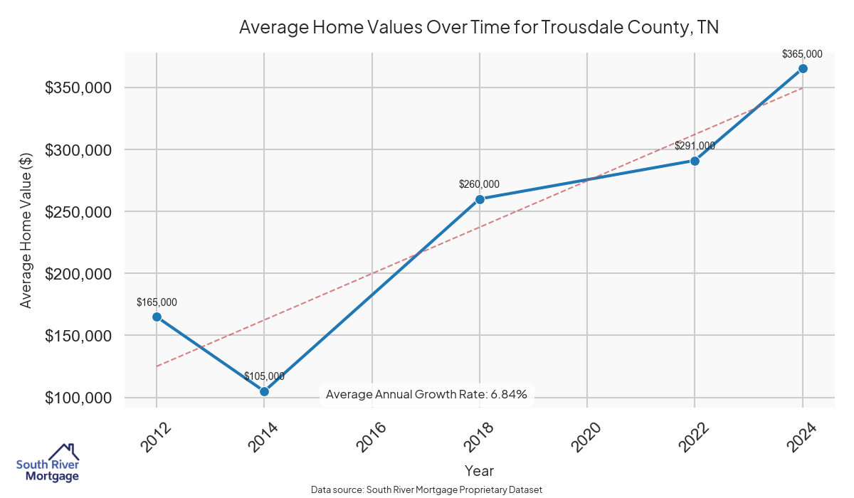 In 2024, there were 6 active reverse mortgage loans in Trousdale County, Tennessee. The average home value in Trousdale County is $305,319.50.