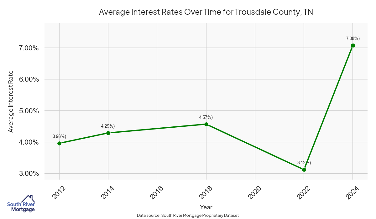 There are approximately 6 active reverse mortgage loans in Trousdale County. The average interest rate in Trousdale County is 8.35% for reverse mortgages. The average maximum claim amount (the lesser of the appraisal or lending limit), among reverse mortgage borrowers, in Trousdale County was $365,000.00 in 2024.
