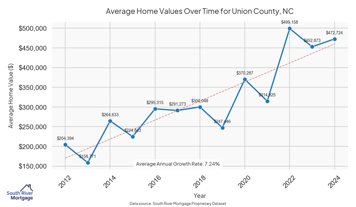 Union County, located in North Carolina, is a vibrant community known for its growing population and diverse amenities. With a population of approximately 242,402 residents, Union County enjoys a moderate climate characterized by warm summers and cool winters. The county is renowned for its picturesque landscapes, charming small towns, and excellent schools, making it a popular choice for families looking to settle down. Historically, Union County played a crucial role during the Civil War, serving as an important site for Confederate troops. Today, the county preserves its rich heritage through historic sites and museums that showcase its past. For seniors in Union County, exploring financial options such as reverse mortgages can be a beneficial way to tap into home equity and enhance retirement income. With an average home value of $494,308.02, an average property tax of $2,322.82, and an average interest rate of 4.61%, seniors can leverage the value of their homes to support their retirement lifestyle.