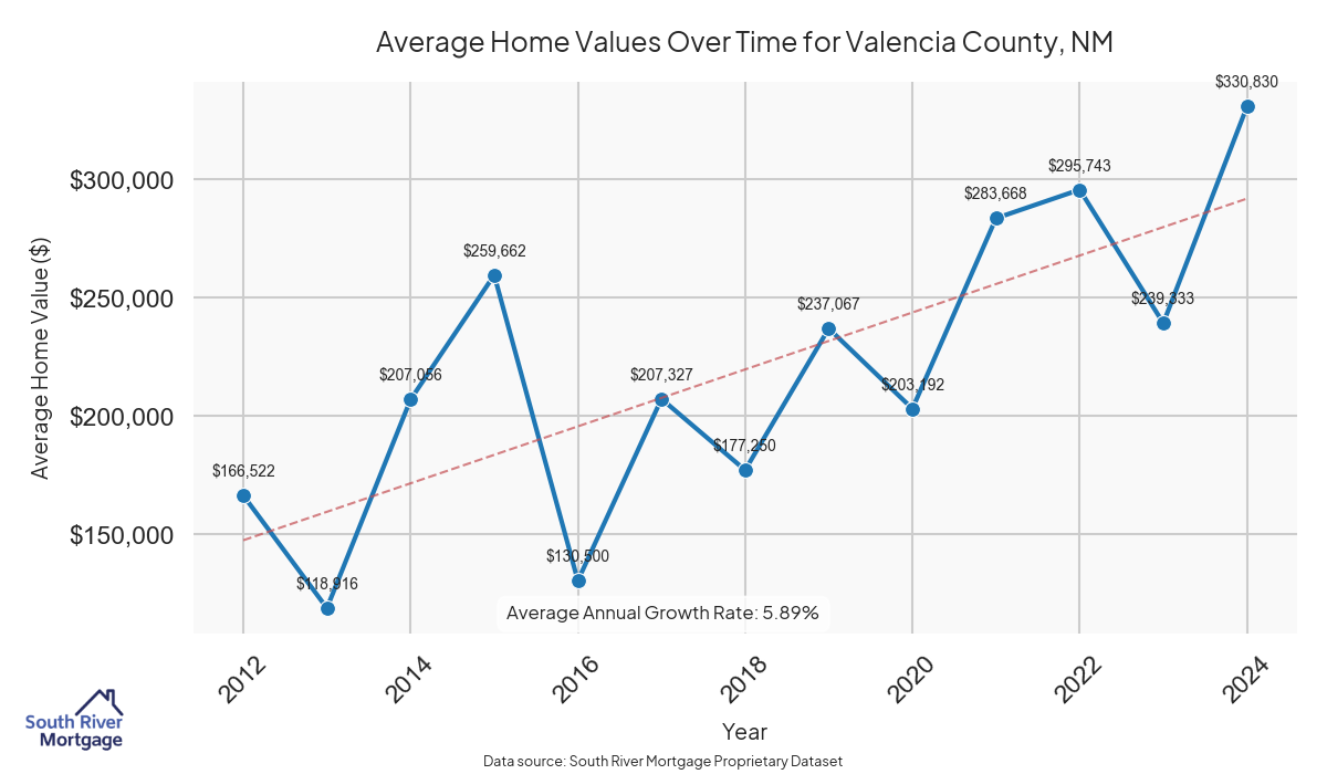 In 2024, there were 68 active reverse mortgage loans in Valencia County, New Mexico. The average home value in Valencia County is $312,890.29.