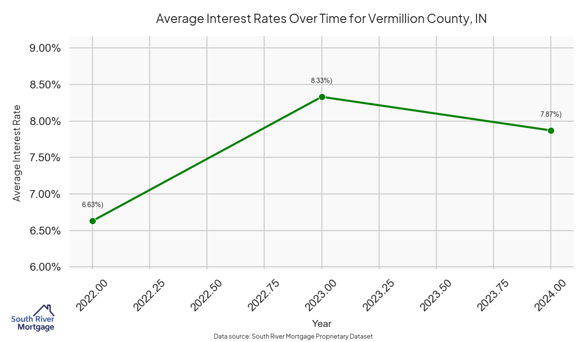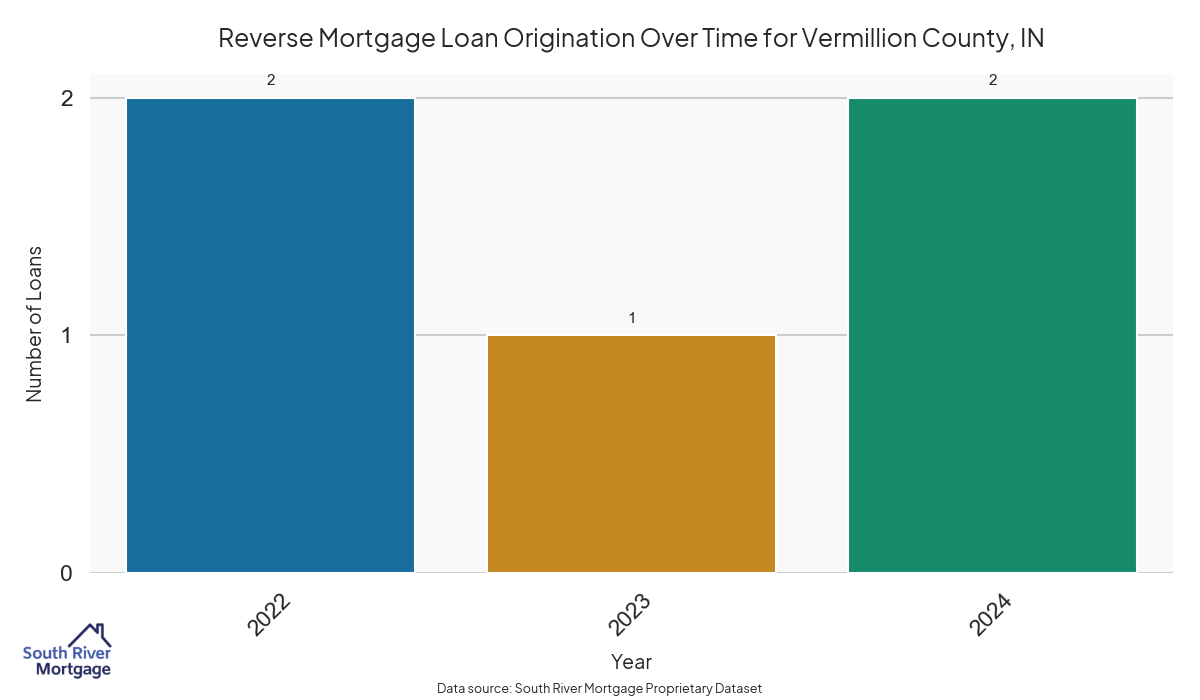 There are approximately 4 active reverse mortgage loans in Vermillion County. The average interest rate in Vermillion County is 8.1% for reverse mortgages. The average maximum claim amount (the lesser of the appraisal or lending limit), among reverse mortgage borrowers, in Vermillion County was $195,000.00 in 2024.