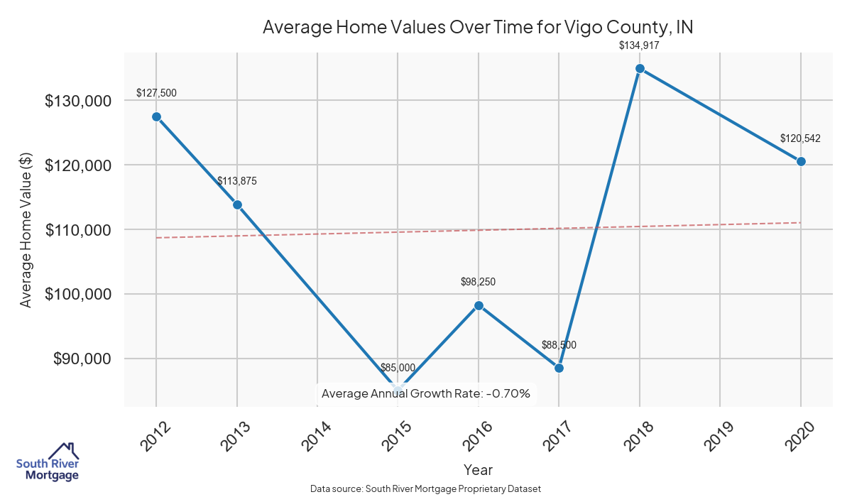 In 2024, there were 20 active reverse mortgage loans in Vigo County, Indiana. The average home value in Vigo County is $180,199.65.