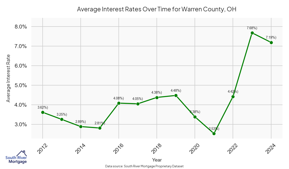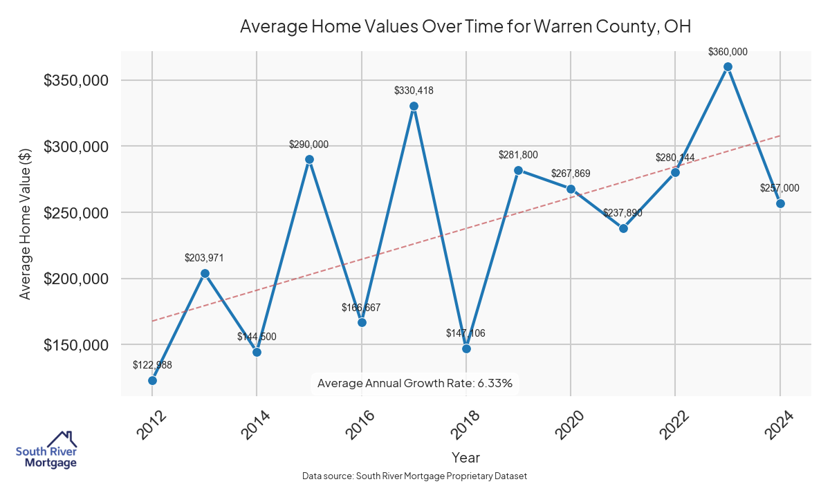 In 2024, there were 103 active reverse mortgage loans in Warren County, Ohio. The average home value in Warren County is $392,681.98.