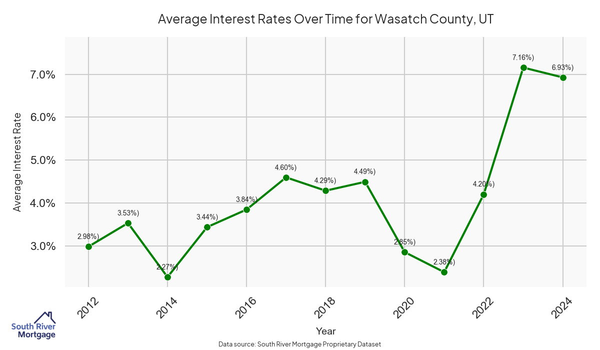 There are approximately 91 active reverse mortgage loans in Wasatch County. The average interest rate in Wasatch County is 7.44% for reverse mortgages. The average maximum claim amount (the lesser of the appraisal or lending limit), among reverse mortgage borrowers, in Wasatch County was $1,223,181.82 in 2024.