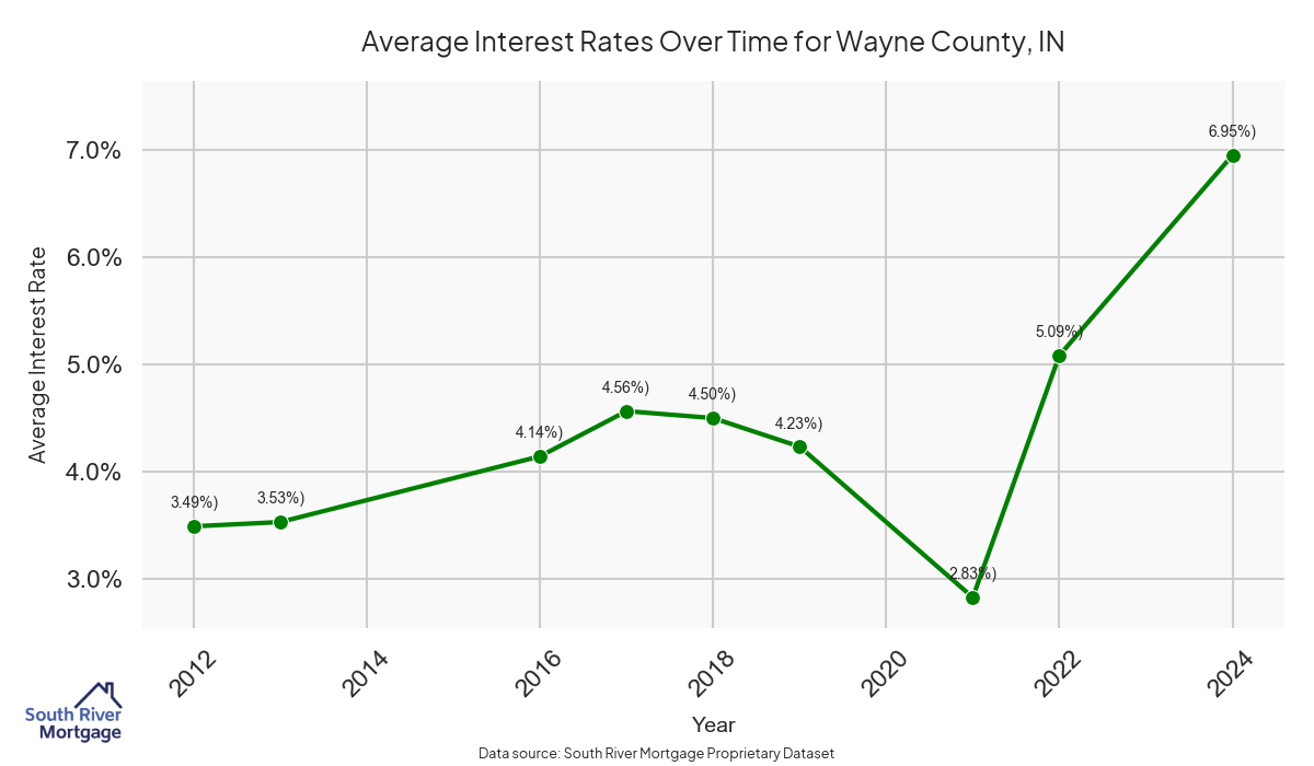 There are approximately 28 active reverse mortgage loans in Wayne County. The average interest rate in Wayne County is 7.25% for reverse mortgages. The average maximum claim amount (the lesser of the appraisal or lending limit), among reverse mortgage borrowers, in Wayne County was $165,000.00 in 2024.