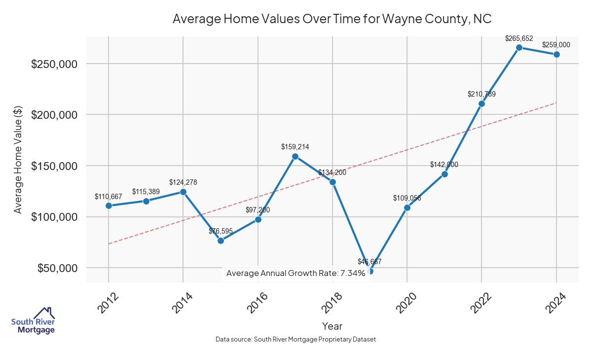 Wayne County, located in North Carolina, has a vibrant population known for its strong sense of community and rich history. With a median home value of $253,233.70 and an average property tax of $1,077.29, the county offers affordable housing options for residents. The area is known for its pleasant climate, with mild winters and warm summers, making it an attractive location for those seeking a comfortable living environment. Historically, Wayne County is notable for its significant role in the Civil War, with several battle sites and monuments scattered throughout the region. For seniors looking to utilize their home equity in retirement, Wayne County presents opportunities for reverse mortgages, allowing homeowners aged 62 and older to access funds while remaining in their homes. With an average interest rate of 4.17%, seniors can benefit from the equity built up in their properties to support their financial needs in retirement.