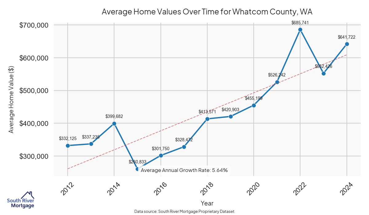 In 2024, there were 351 active reverse mortgage loans in Whatcom County, Washington. The average home value in Whatcom County is $693,771.03.