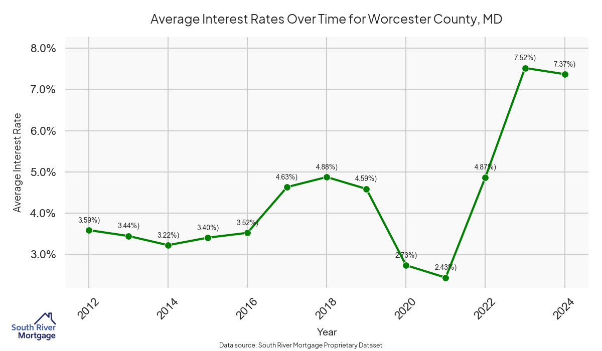 There are approximately 117 active reverse mortgage loans in Worcester County. The average interest rate in Worcester County is 7.6% for reverse mortgages. The average maximum claim amount (the lesser of the appraisal or lending limit), among reverse mortgage borrowers, in Worcester County was $641,666.67 in 2024.