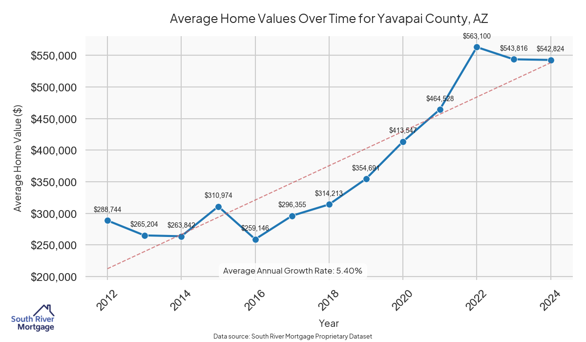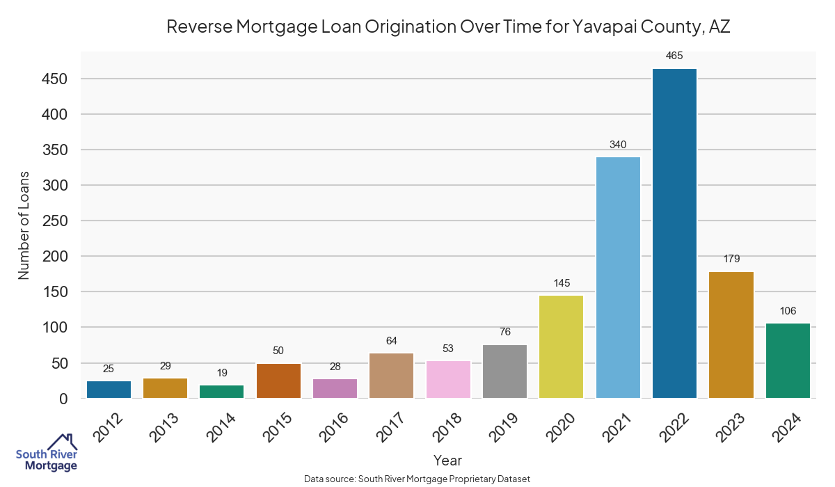 In 2024, there were 1567 active reverse mortgage loans in Yavapai County, Arizona. The average home value in Yavapai County is $600,194.64.