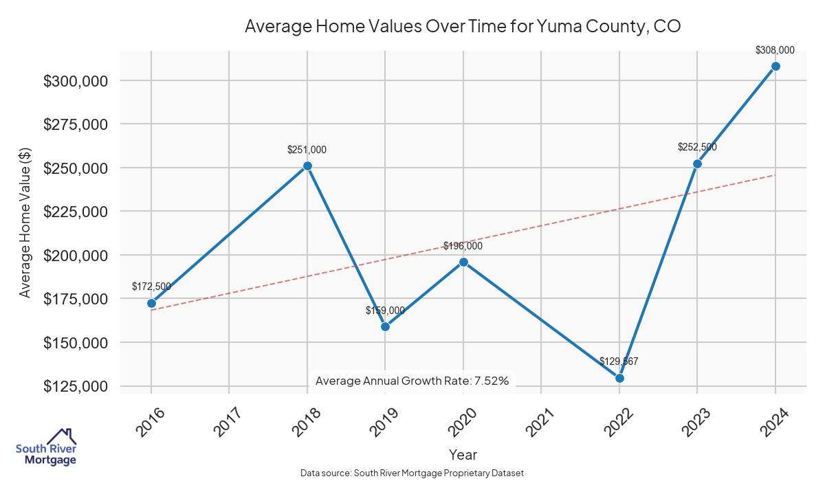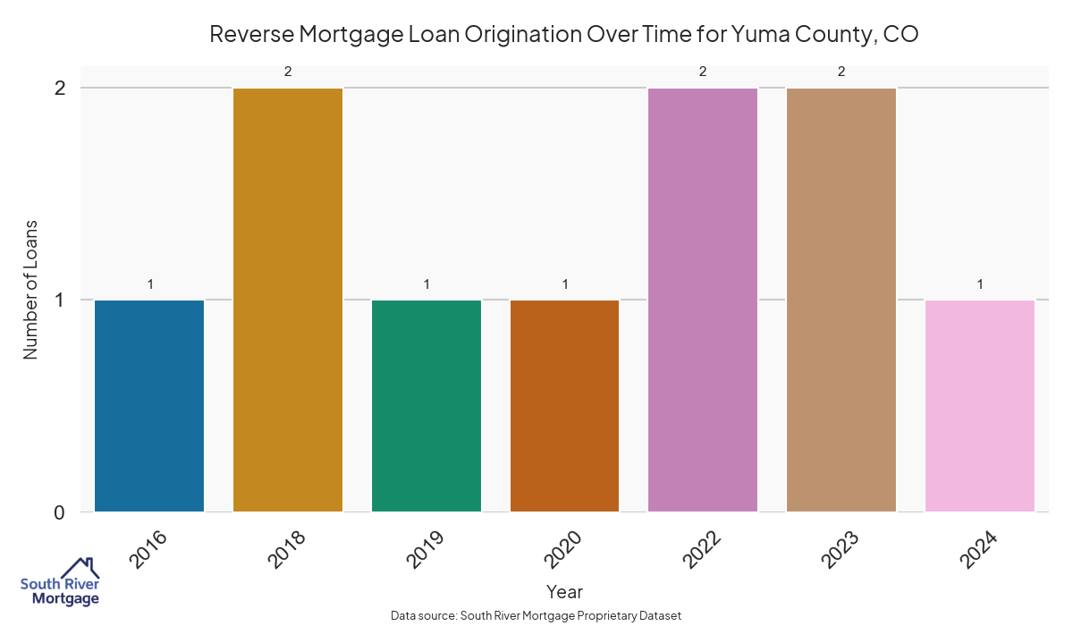 In 2024, there were 10 active reverse mortgage loans in Yuma County, Colorado. The average home value in Yuma County is $272,814.50.