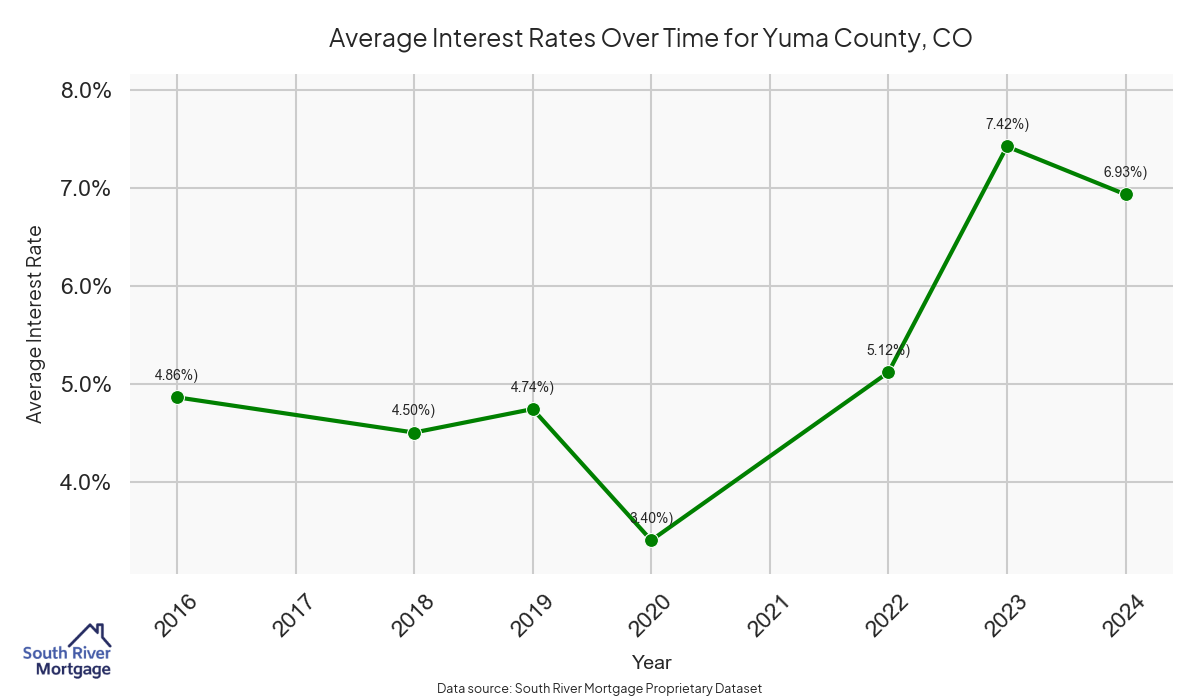 There are approximately 10 active reverse mortgage loans in Yuma County. The average interest rate in Yuma County is 7.27% for reverse mortgages. The average maximum claim amount (the lesser of the appraisal or lending limit), among reverse mortgage borrowers, in Yuma County was $258,333.33 in 2024.